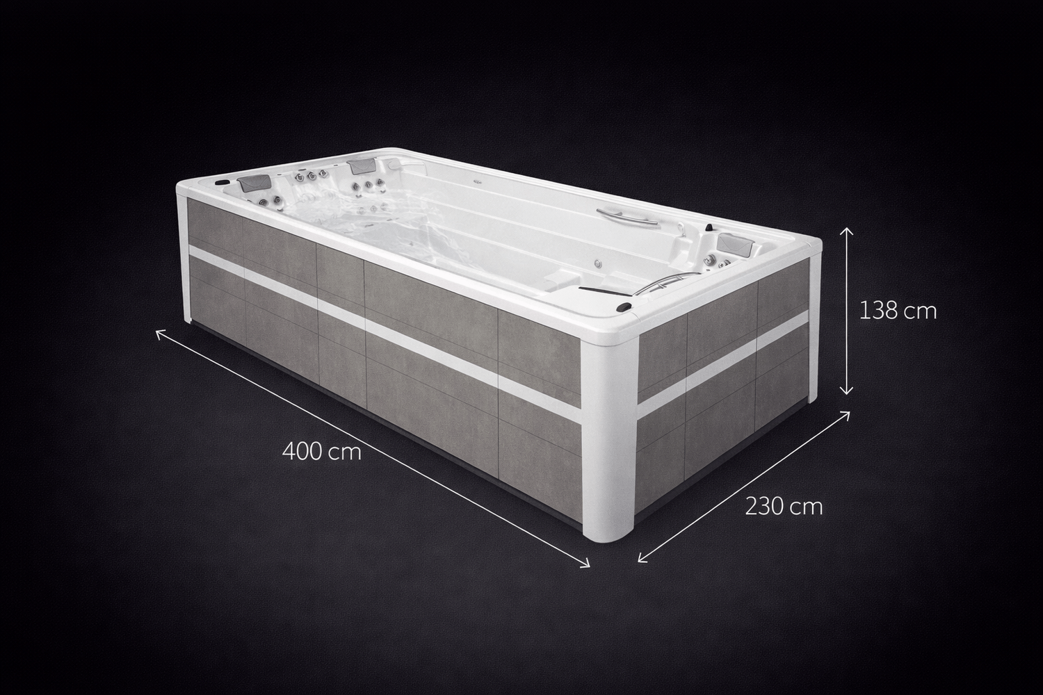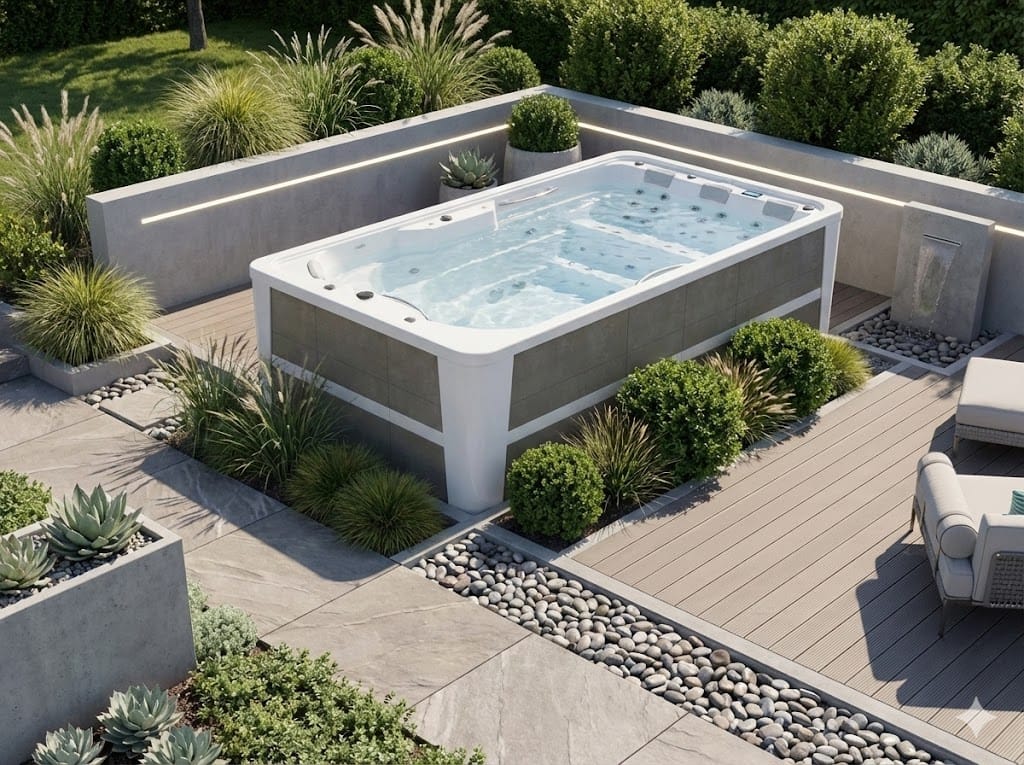 Spa de nage 4 places compact, conçu pour bouger et récupérer.
